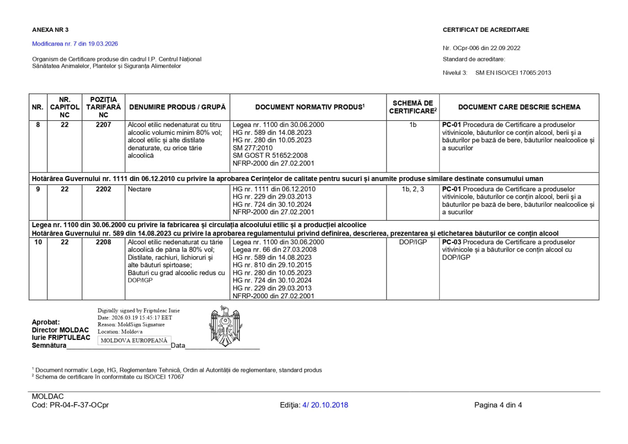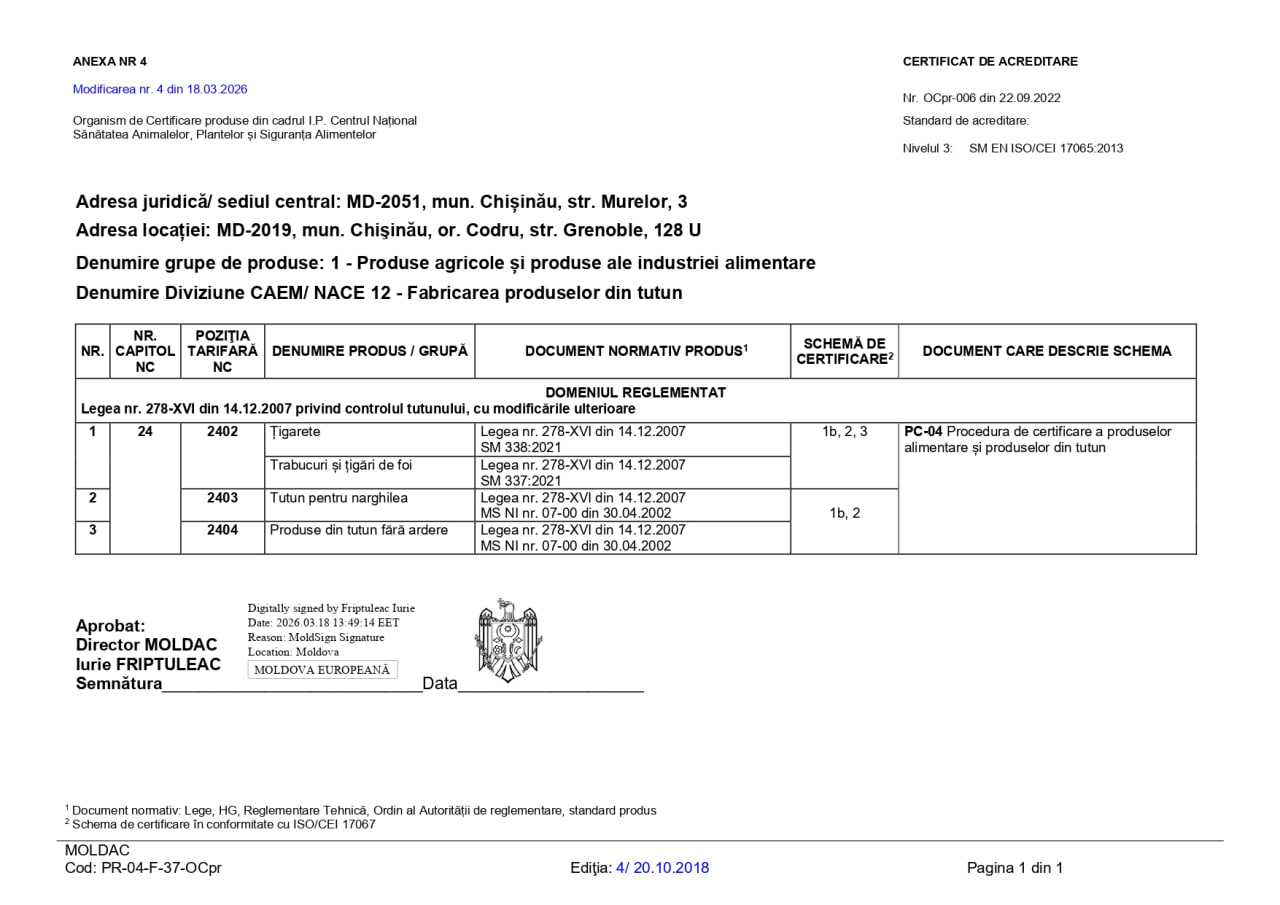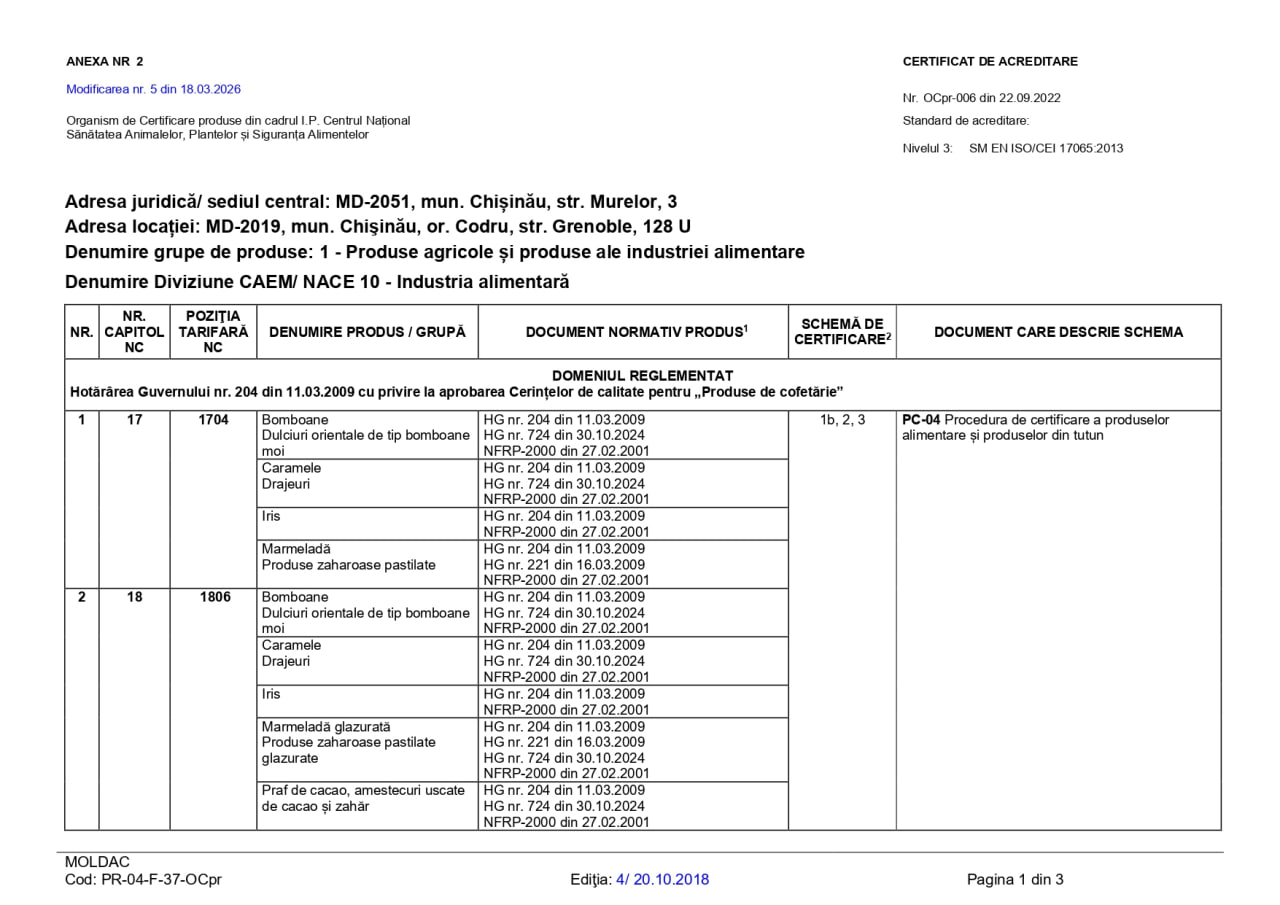 Organismul de certificare din cadrul Instituției Publice „Centrul Național Sănătatea Animalelor, Plantelor și Siguranța Alimentelor” (I.P. „CNSAPSA”) activează în conformitate cu prevederile standardului SM EN ISO/CEI 17065:2013 „Evaluarea Conformității. Cerințe pentru organisme care certifică produse, procese și servicii”.