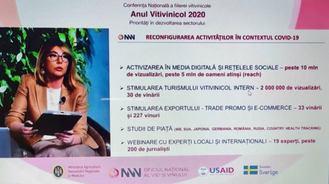 La conferința în cauză, desfășurată în format online, au participat circa 50 de reprezentanți ai autorităților publice centrale de profil, membrii Consiliului de Coordonare al ONVV, membri ai platformelor ONVV (viticultură, vinificație, marketing), administratori ai întreprinderilor vitivinicole, șefi de producere, tehnologi, specialiști de laborator, specialiști în viticultură, reprezentanți ai instituțiilor de educație și cercetare pentru sectorul vitivinicol.