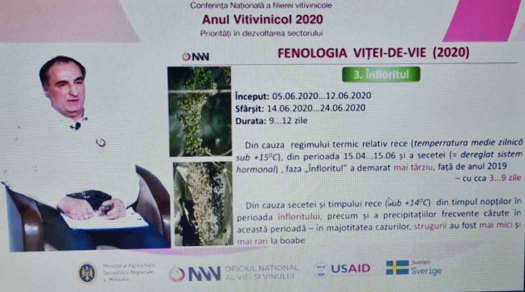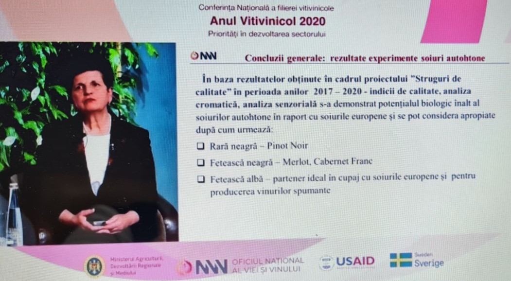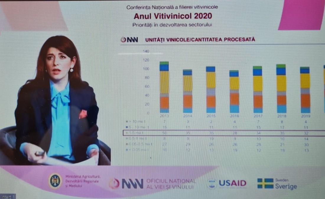Prezentări ample și consistente, de interes sporit pentru participanții la Conferință, dar și pentru sectorul vitivinicol în ansamblu, au fost făcute de către dna Cristina FROLOV – director ONVV, dl Valeriu CEBOTARI – consultant principal în cadrul MADRM, dna Diana LAZĂR – vicedirector al „Proiectului de Competitivitate din Moldova” finanțat de USAID și Guvernul Suediei, dna Irina BÎSTRIȚCHI – vicedirector al ONVV, dl Vladimir COROBCA – consultant în viticultură în cadrul ONVV, dna Elizaveta BREAHNĂ – șef direcție și consultant în vinificație în cadrul ONVV.
