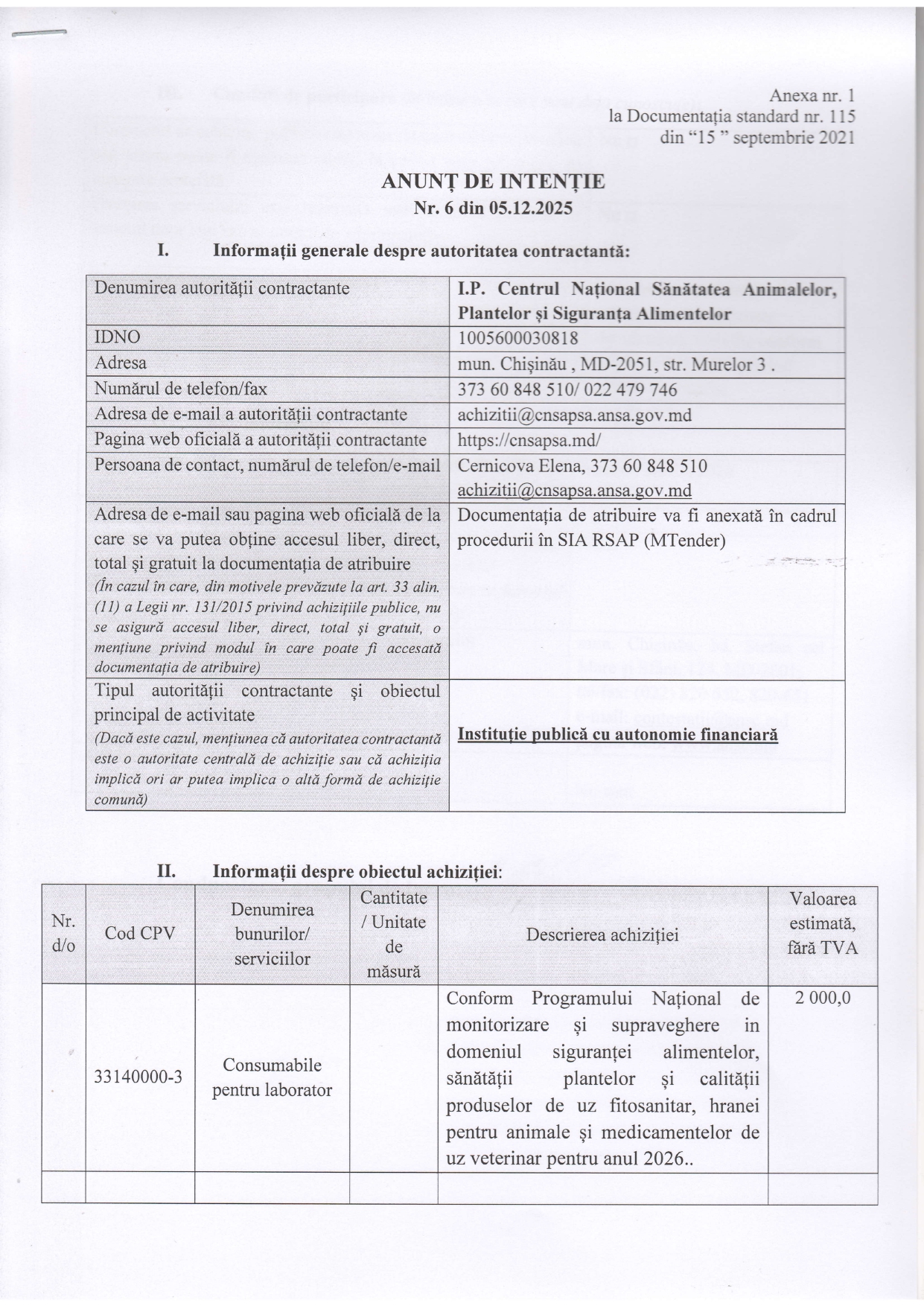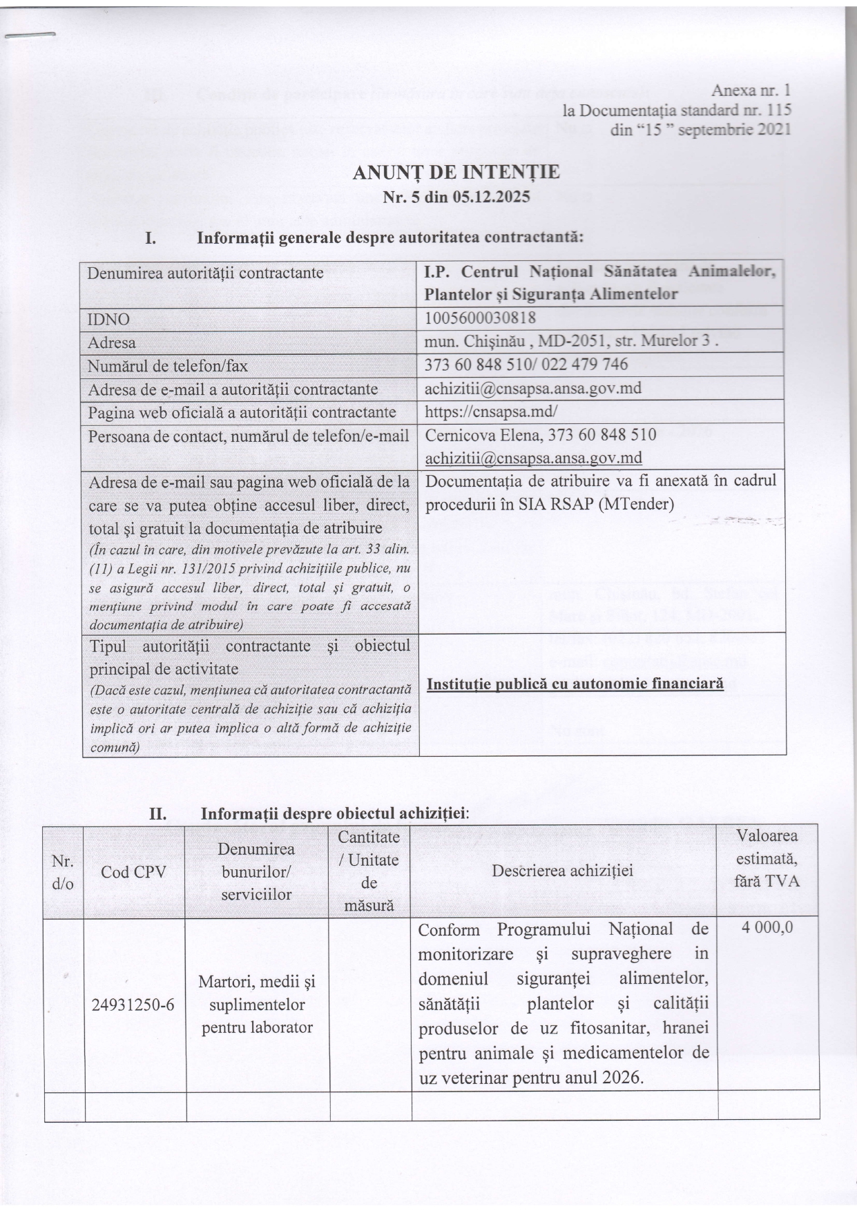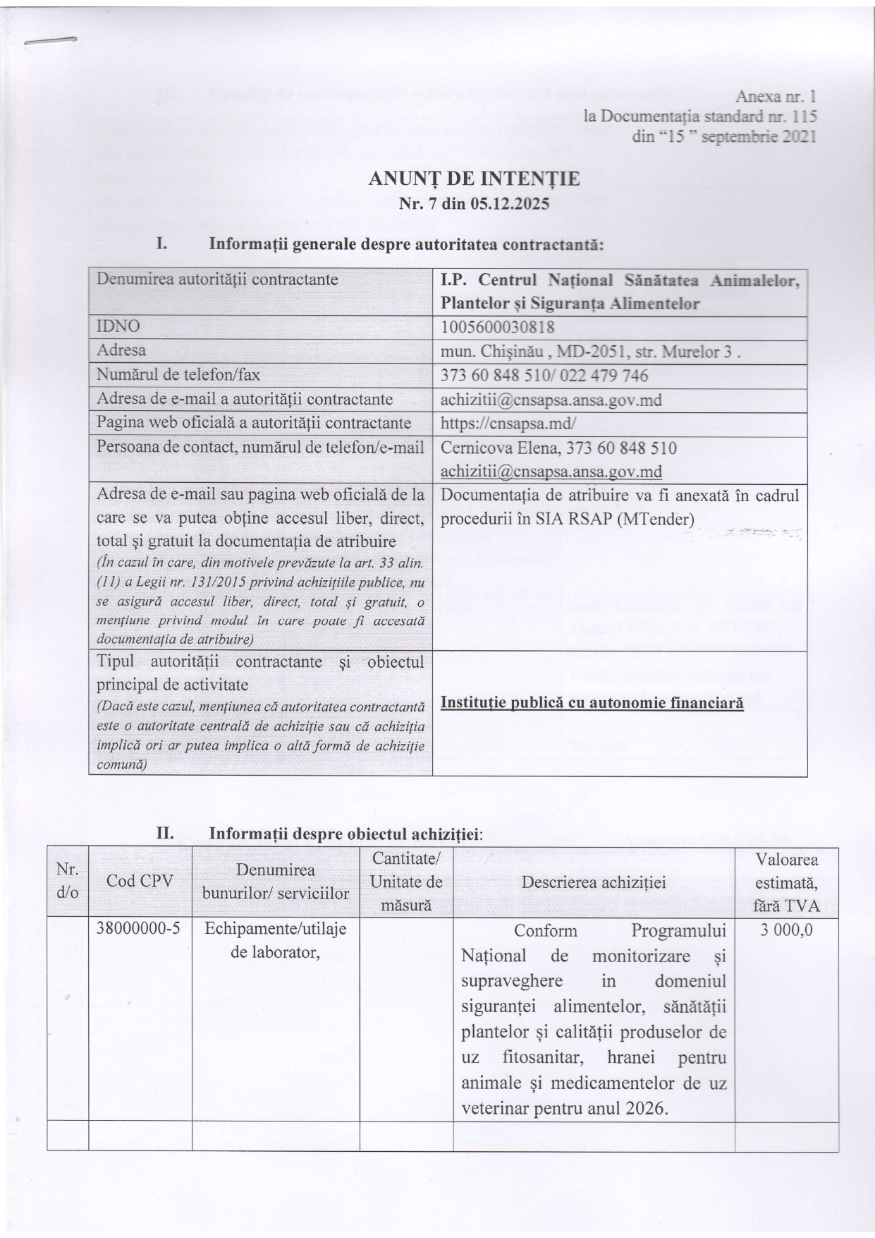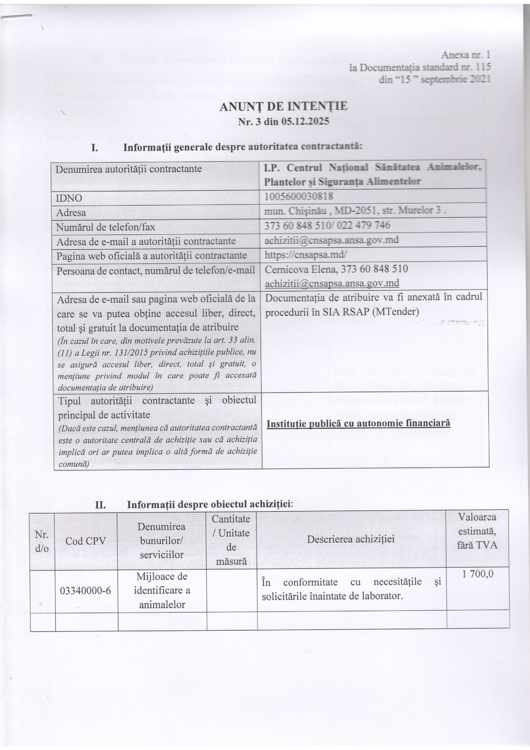 Anunt nr.1 din 05.12.2025